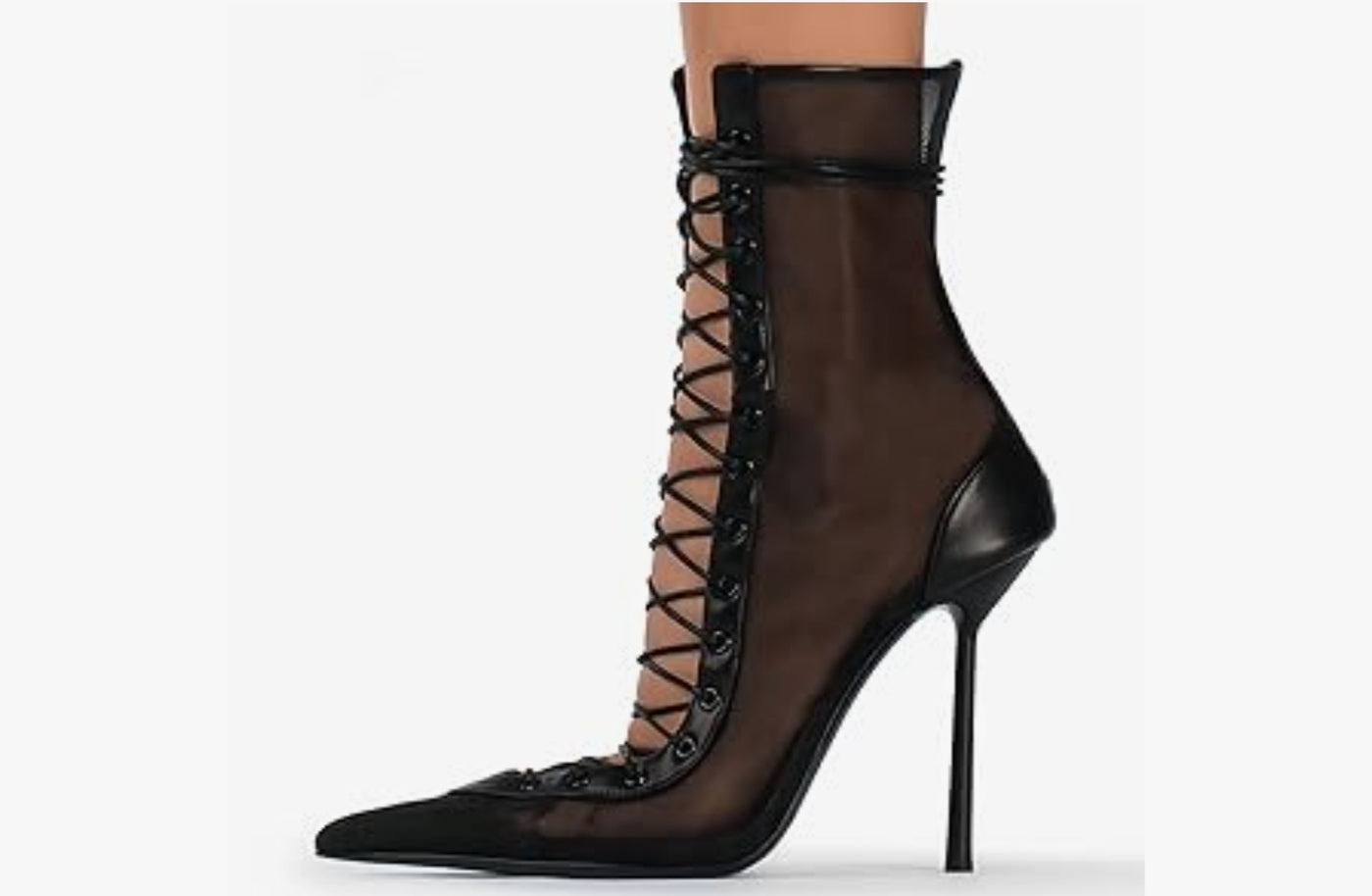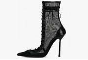 Kniehohe Stiefel Damen | Sexy Mesh-Stiefel mit Schnürung