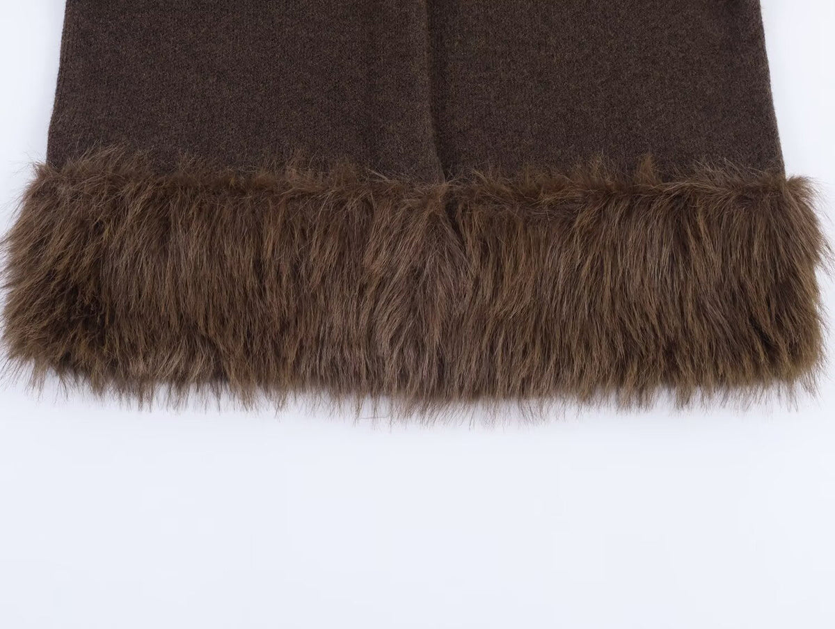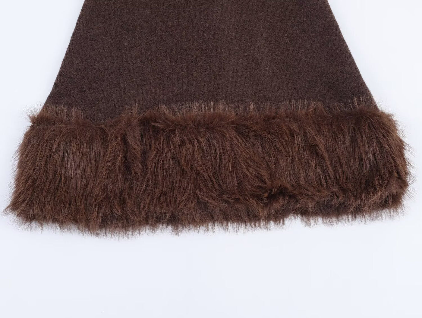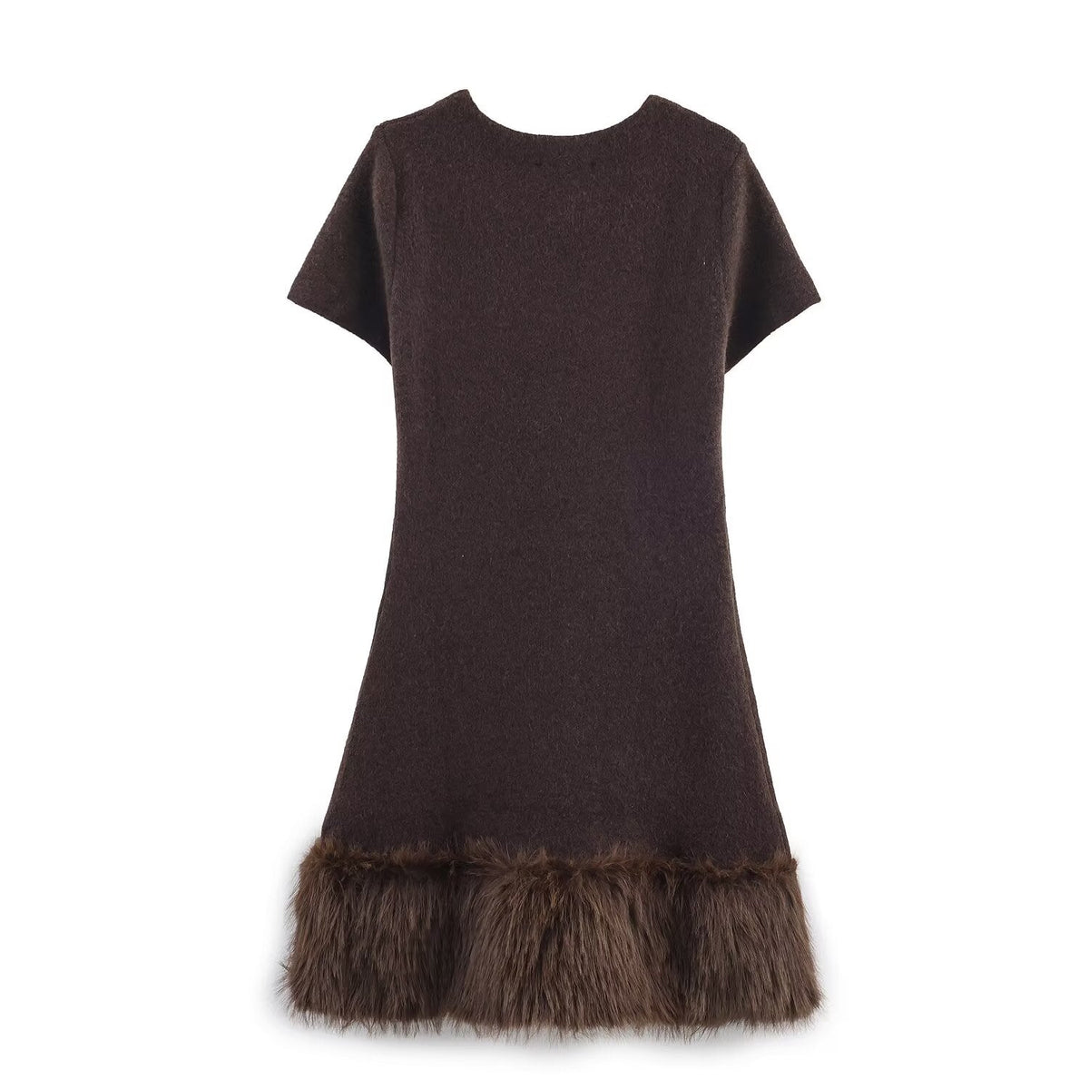 * Design: Kurzes Wollkleid mit markantem Kunstfellsaum