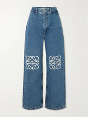 Weite Jeans Damen | High-Waist Denim mit Logo-Stickerei